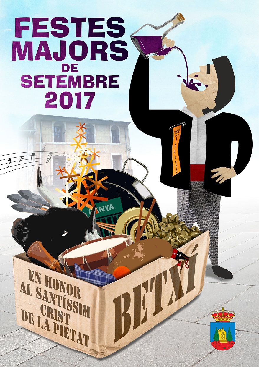 La Junta de Portaveus de l’Ajuntament de Betxí, reunida el passat dia 27 de juliol, va procedir a l’elecció de la imatge que formarà part de la portada del programa de les Festes Majors de Setembre 2017, en honor al Santíssim Crist de la Pietat. El primer premi, amb una dotació de 250 €, va recaure en el cartell presentat amb el lema «Preparats per a la festa», obra de l’autor betxinenc Alfonso Giménez Ventura.