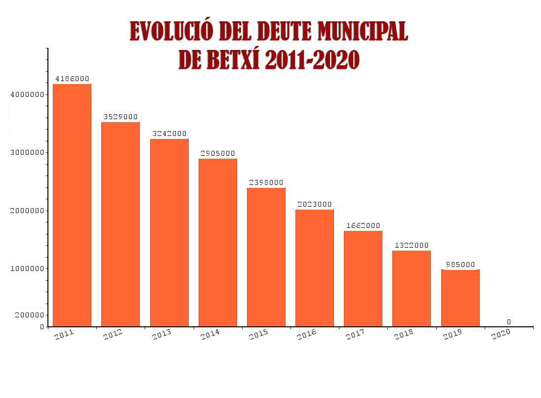 En total, entre 2011 i 2020 l’Ajuntament de Betxí ha pagat 4.186.000 euros de préstecs contrets en legislatures anteriors a la del 2011. D’aquesta manera, l’Ajuntament de Betxí ha acabat de pagar ara projectes executats fins a tres legislatures anteriors (la de 2007 i la de 2011). Segons ha detallat Alfred Remolar, aquesta mesura s’ha pogut prendre perquè l’ajuntament ha aconseguit, gràcies a la correcta gestió econòmica realitzada, avançar en més de 5 anys la cancel·lació dels préstecs. «Estem molt satisfets de la feina feta en els últims anys en matèria econòmica, ja que hem pogut complir amb antelació el principal objectiu del nostre govern, que no era altre que sanejar les arques públiques i fer una política rigorosa en la hisenda pública».