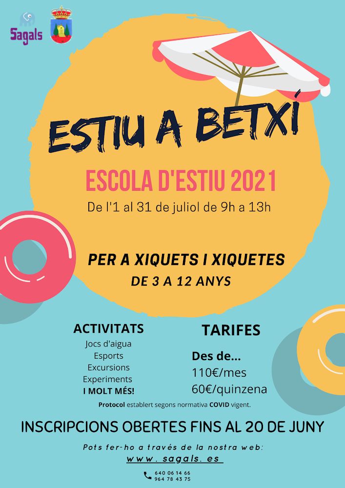 Betxí comptarà enguany amb dos escoles d’estiu. D’una banda, els xiquets i xiquetes d’entre 1 i 3 anys poden inscriure’s en la Escoleta d’Estiu que s’organitzarà a Pequelar durant el mes de juliol. D’altra banda, com l’any passat, per als majors de 3 anys s’ha preparat una escola d’estiu esportiva.