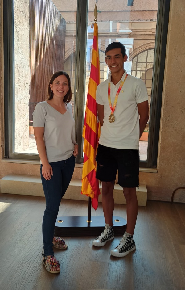 L’atleta Iker Moreno Morata, de 17 anys, ha rebut la insígnia d’honor de l’Ajuntament de Betxí de mans de l’alcaldessa Carla Nebot, qui ha acollit a l’esportista al seu despatx per a atorgar aquest distintiu i que Moreno signara el llibre d’honor de l’Ajuntament.