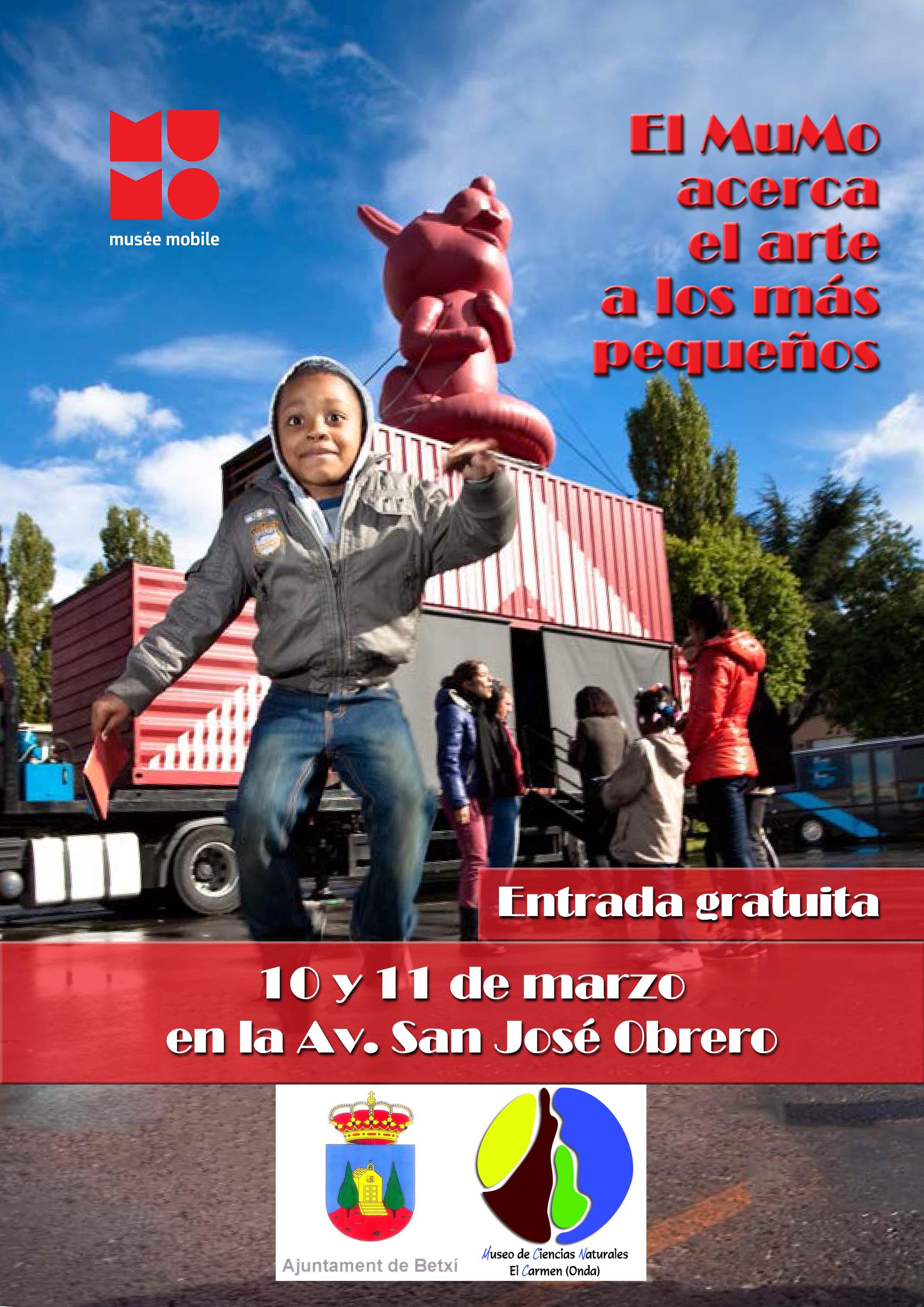 mumo_cartellDesprés de rebre la visita de més de 65.000 xiquets i xiquetes a França, Camerun, Costa d’Ivori, Bèlgica, Suïssa, Luxemburg i Espanya, Mumo, el museu mòbil per a xiquets, torna a la Península Ibèrica de gener a maig 2016, i fa una parada a Betxí el 10 i 11 de març de la mà de l’Ajuntament de Betxí i del “Museo de Ciencias Naturales El Carmen” d’Onda.