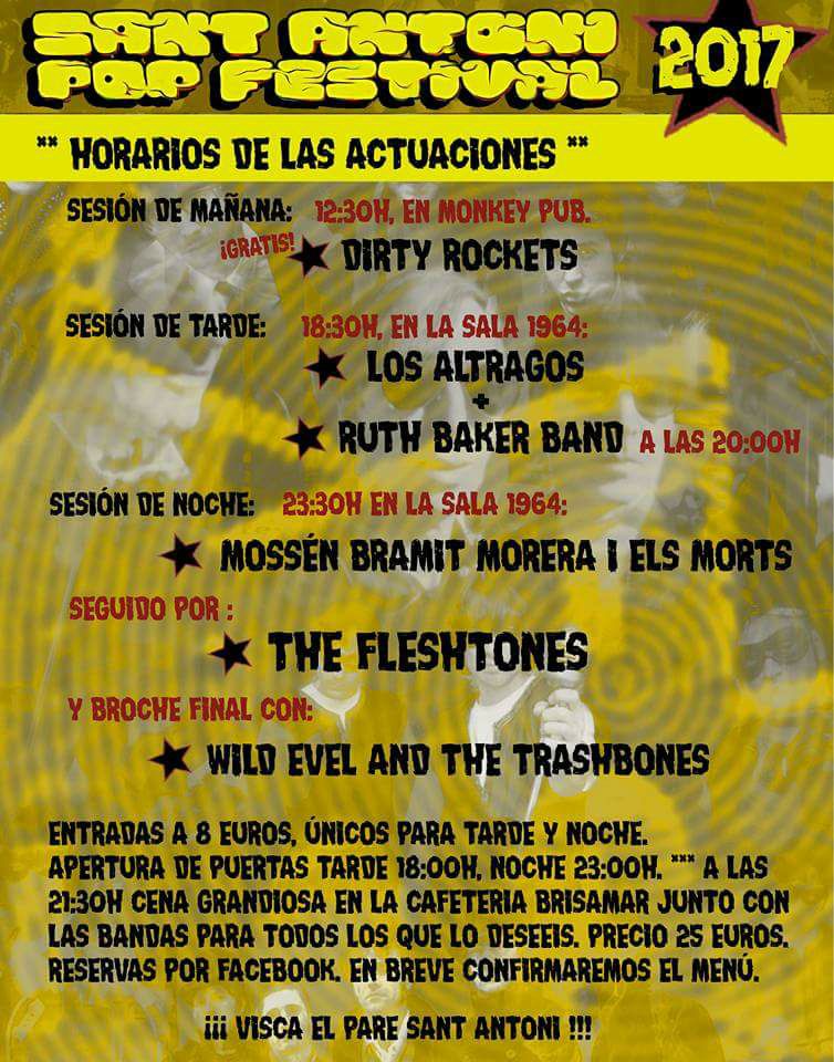 “XI Sant Antoni Pop Festival” al “Saló 1964” (“Brisamar”). Preu de les entrades: 8 euros