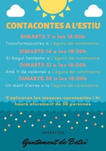 La primera de les sessions es titula “Transformacontes”, que serà seguida la pròxima setmana per “El bagul fantàstic”, “Amb V de valentes” i “Un munt d’erres” en les posteriors edicions. Amb el hastag #betxinopara, el consistori posa en funcionament tota una sèrie d’activitats lúdiques i culturals al llarg dels pròxims mesos.