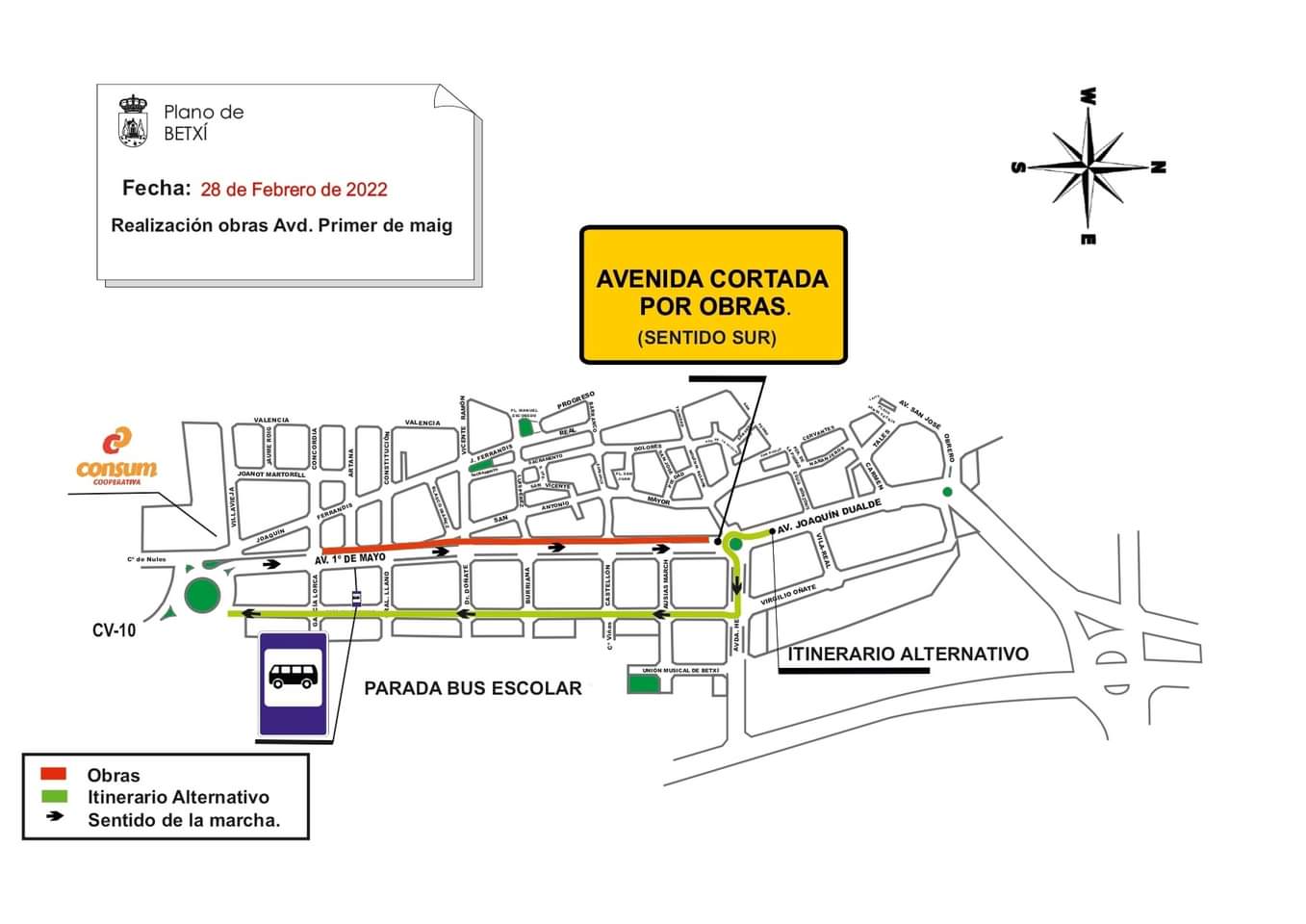 Fins al final de les obres, l’avinguda comptarà amb un únic sentit de circulació, en sentit nord, i s’habilitarà com a itinerari alternatiu el C/ del País Valencià.