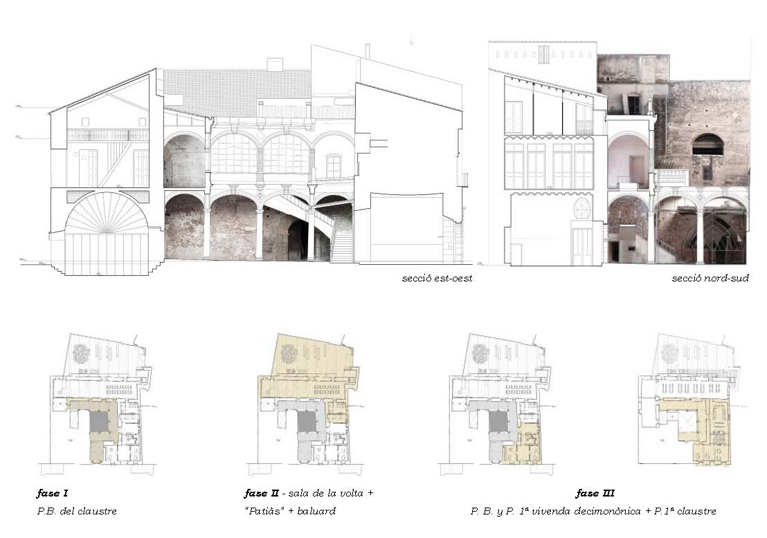 La intervenció, tant del claustre com de la façana principal, es planteja des del criteri de restauració conservativa, consolidant la preexistència i fent llegible la intervenció.