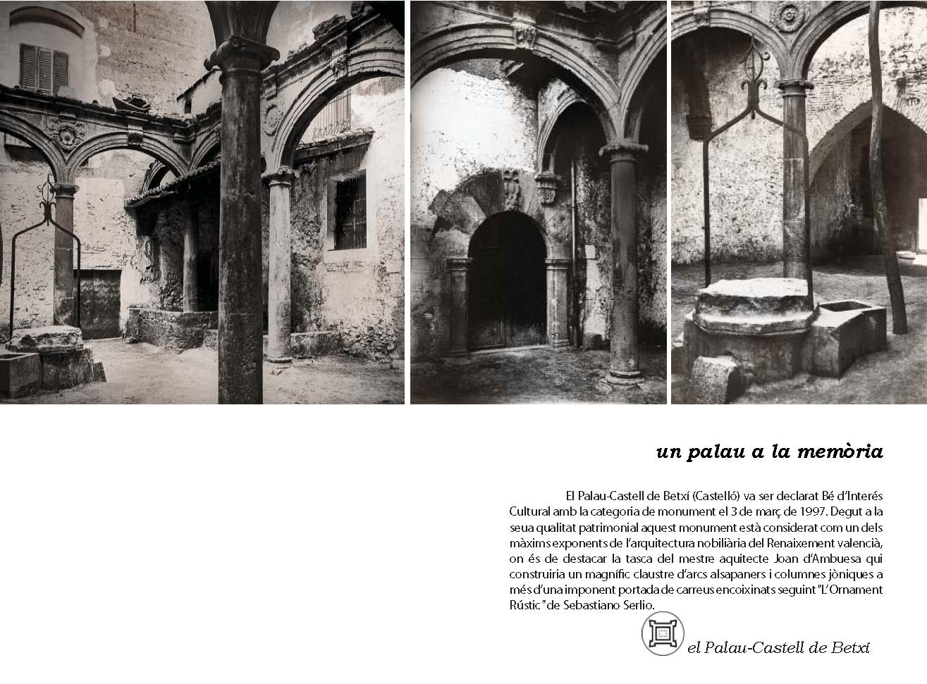 L’execució del projecte de la fase III de recuperació del Palau Castell de Betxí va donar continuidad a la recuperació de l’exterior del monument, iniciada en 2014 amb la restauració de la portada renaixentista i la remodelació de la Plaça Major, al temps que es recuperaven les dependències de la vivenda de Pascual Meneu en planta baixa.